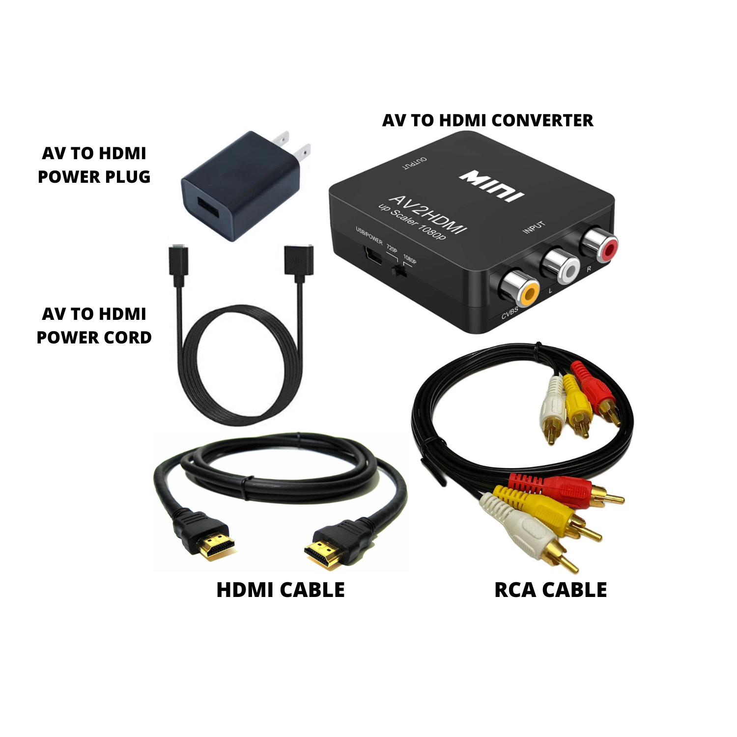 Locate the AV To HDMI adapter included. You will also need both the RCA Cables (included with your DVD VHS Purchase) and HDMI cable (included with your AV to HDMI Converter purchase). If you haven't purchased the converter yet, buy with the link below.